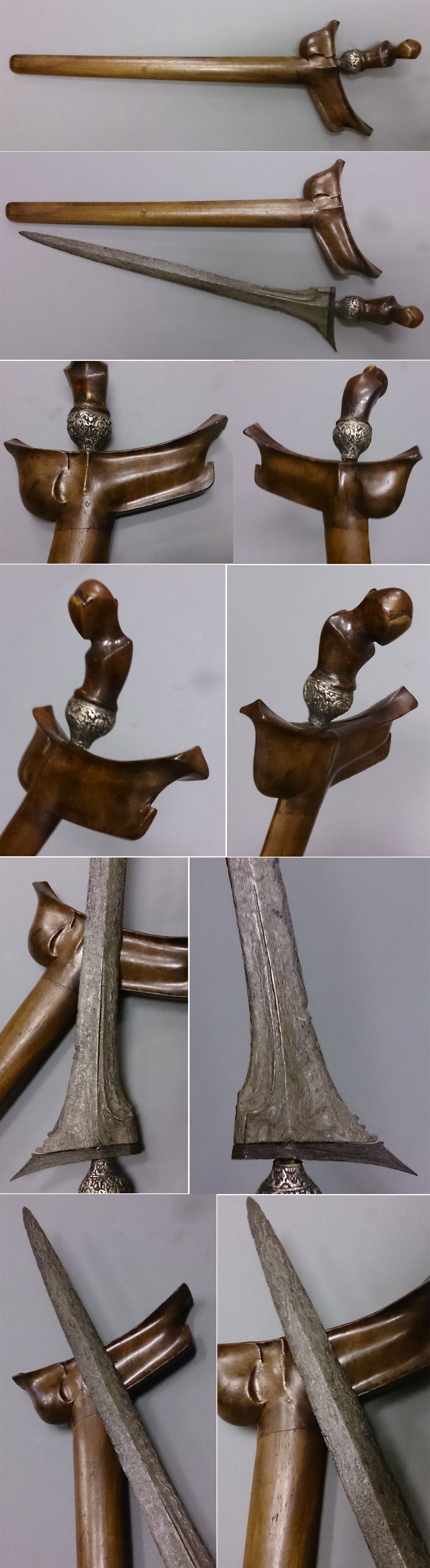 Age: Krises are traditionally made without any date stampings or engravings of the makers' name. Although a kris smith or "empu" has his own styles configured together with the dapor and especially the ganjar (cross piece). Obvious age wear and tear, usage, familiarity with forms, motifs and designs, origin and history, mediums and materials used are our guidelines in determining an approximate age. This particular piece, from our experience and knowledge, should go back to the early to middle 19th century.